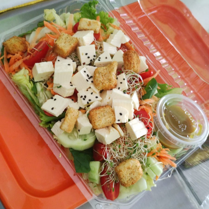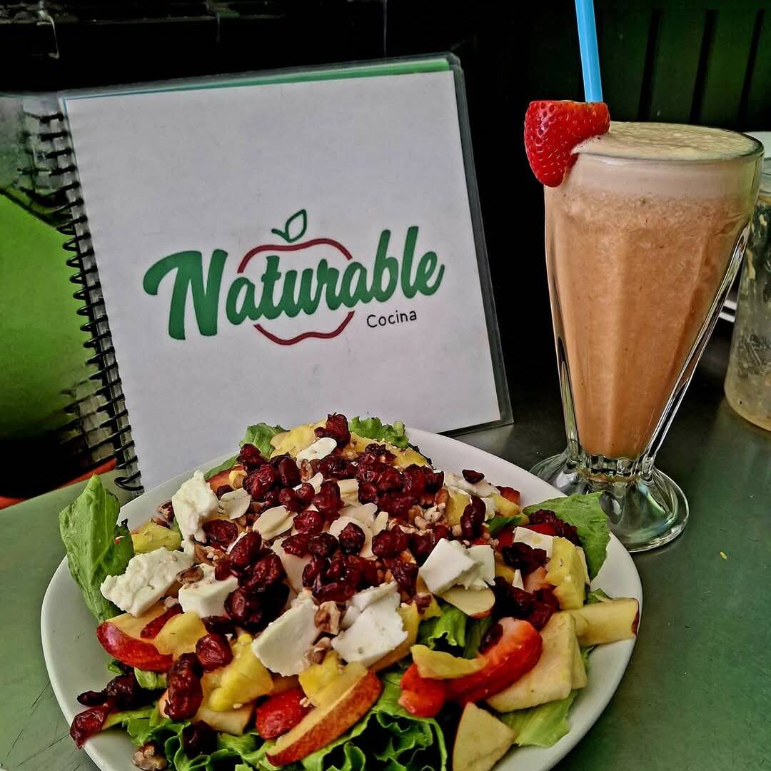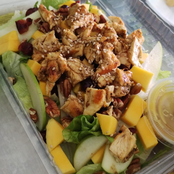 ENSALADA LECHUGA, MANZANA VERDE, PIÑA, NUEZ, ARANDANOS, AJONJOLI Y MIEL MAPLE + PROTEINA