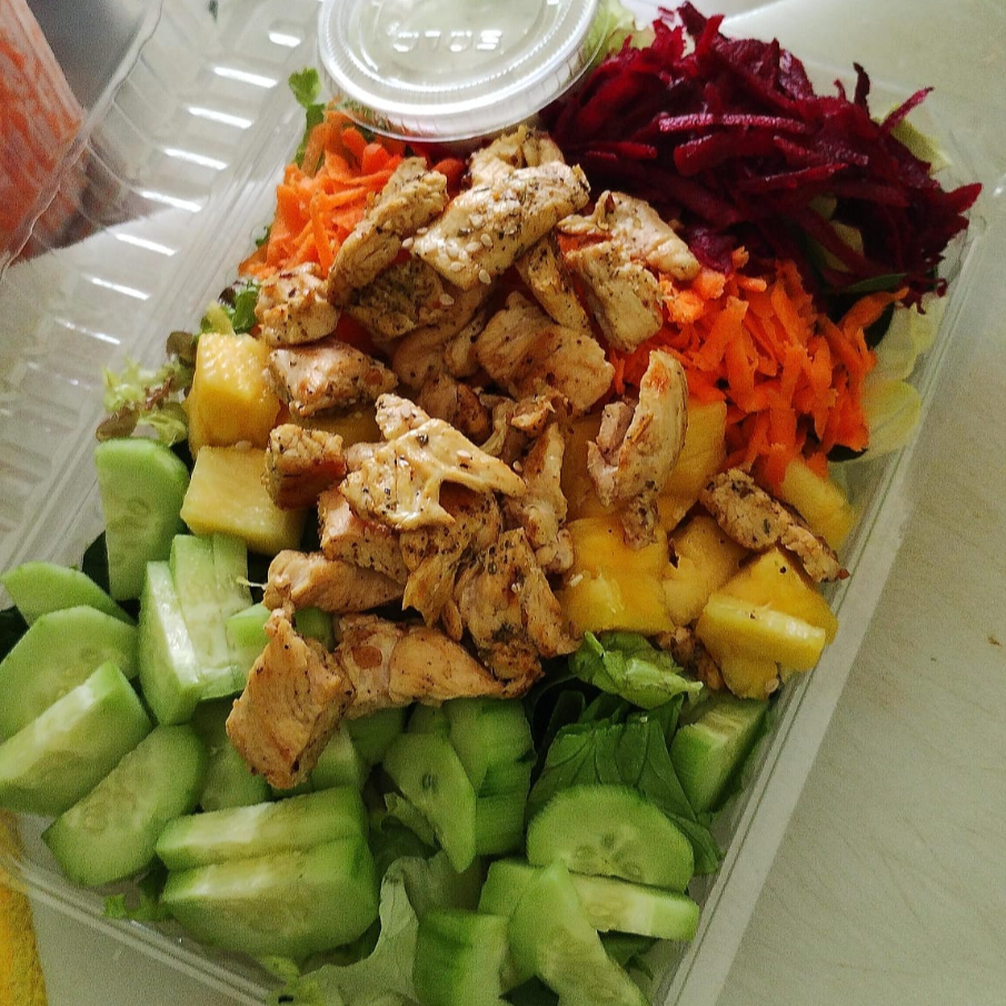 ENSALADA LECHUGA, BETABEL, ESPINACA, PEPINO, ZANAHORIA RAYADA, PIÑA + PROTEINA