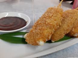 Por dentro: surimi empanizado y por fuera: Plátano macho frito.