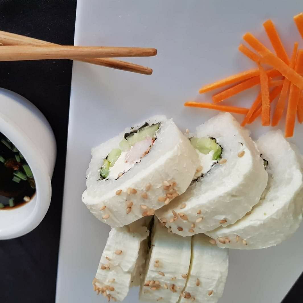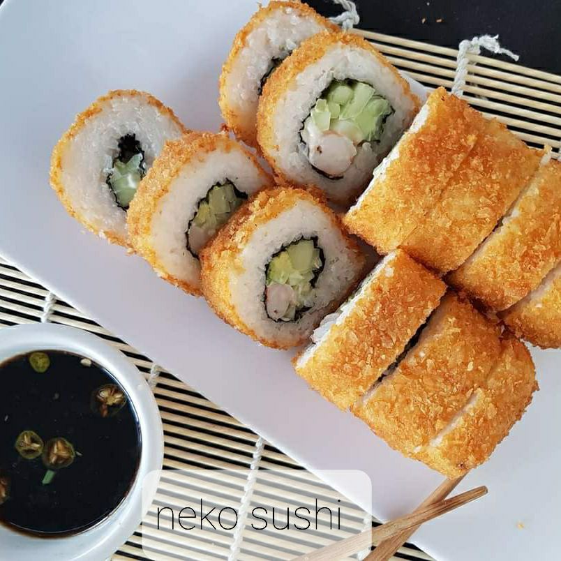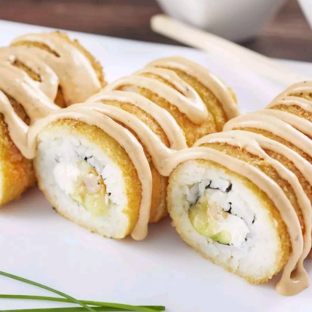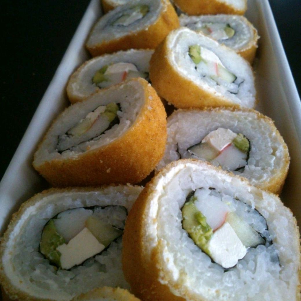 Sushi empanizado, por dentro aguacate, philadelpia, pepino y el marisco de tu elección.