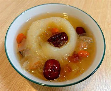 Lleva pera, dátiles rojo chino, bayas de goji, hongo blanco (es buena para la garganta).
