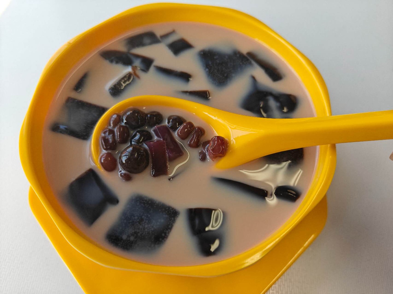 Un postre chino tradicional, lleva tapioca transparente con frijoles dulces y leche.