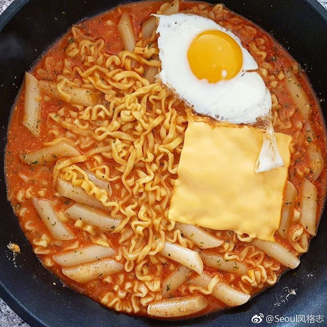 Ramen con topoki picante, lleva queso, leche, huevo, alga y ajonjolí.
