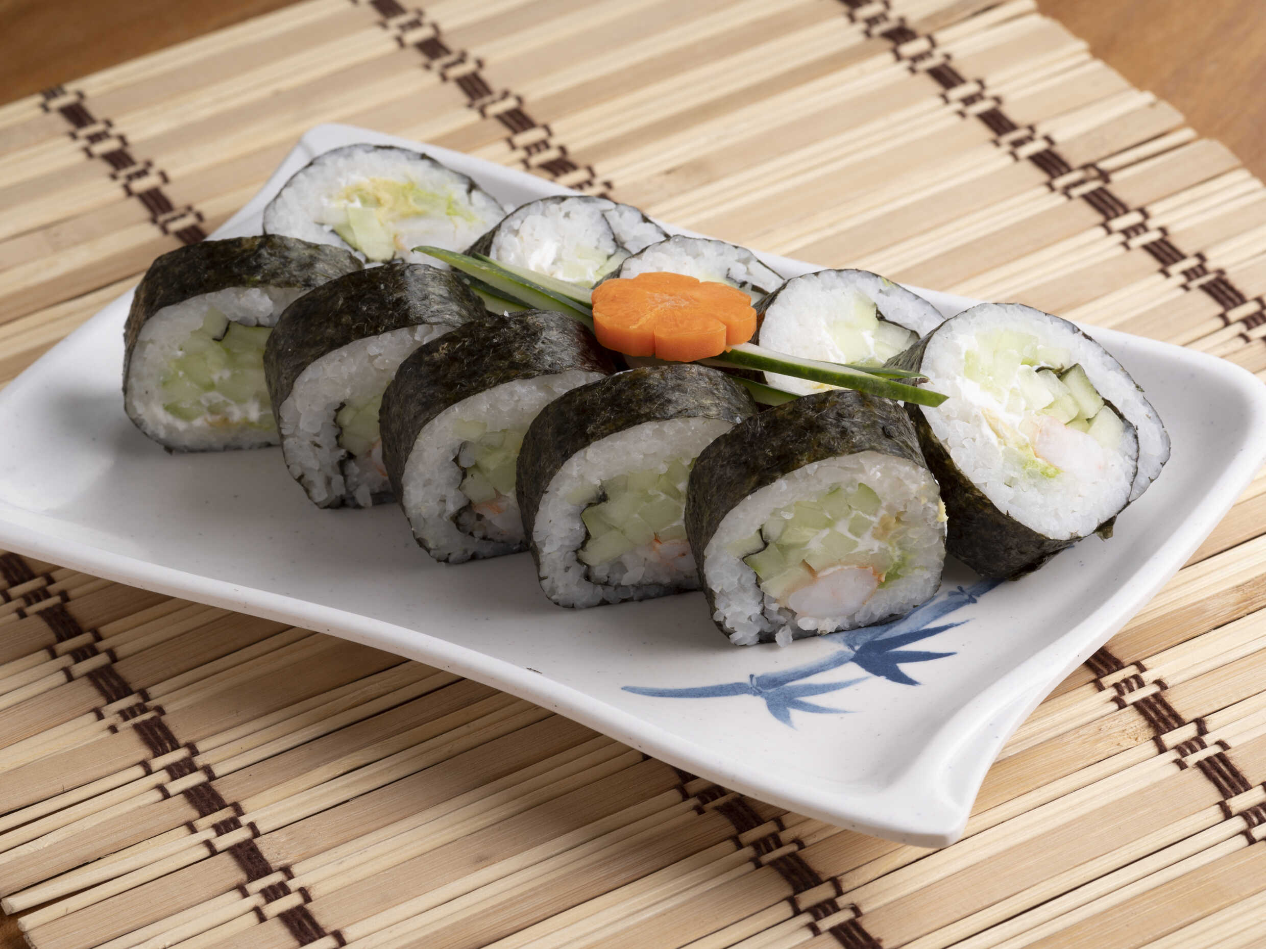 Alga por fuera con camaron ó surimi por dentro