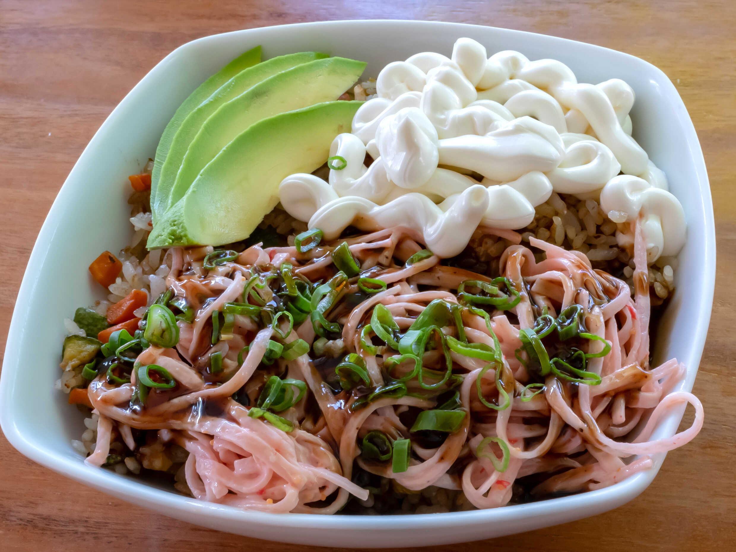 Arroz frito con Kanikama queso philadelphia, aguacate y salsa de anguila
