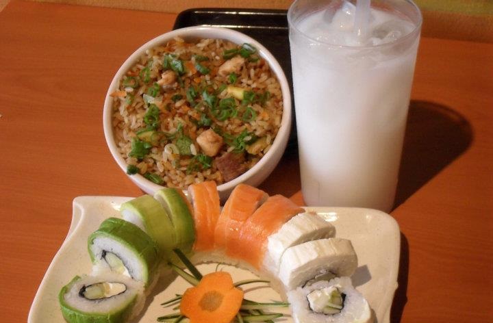 Arroz frito con aguacate Philadelphia camarones empanizados y salsa de anguila