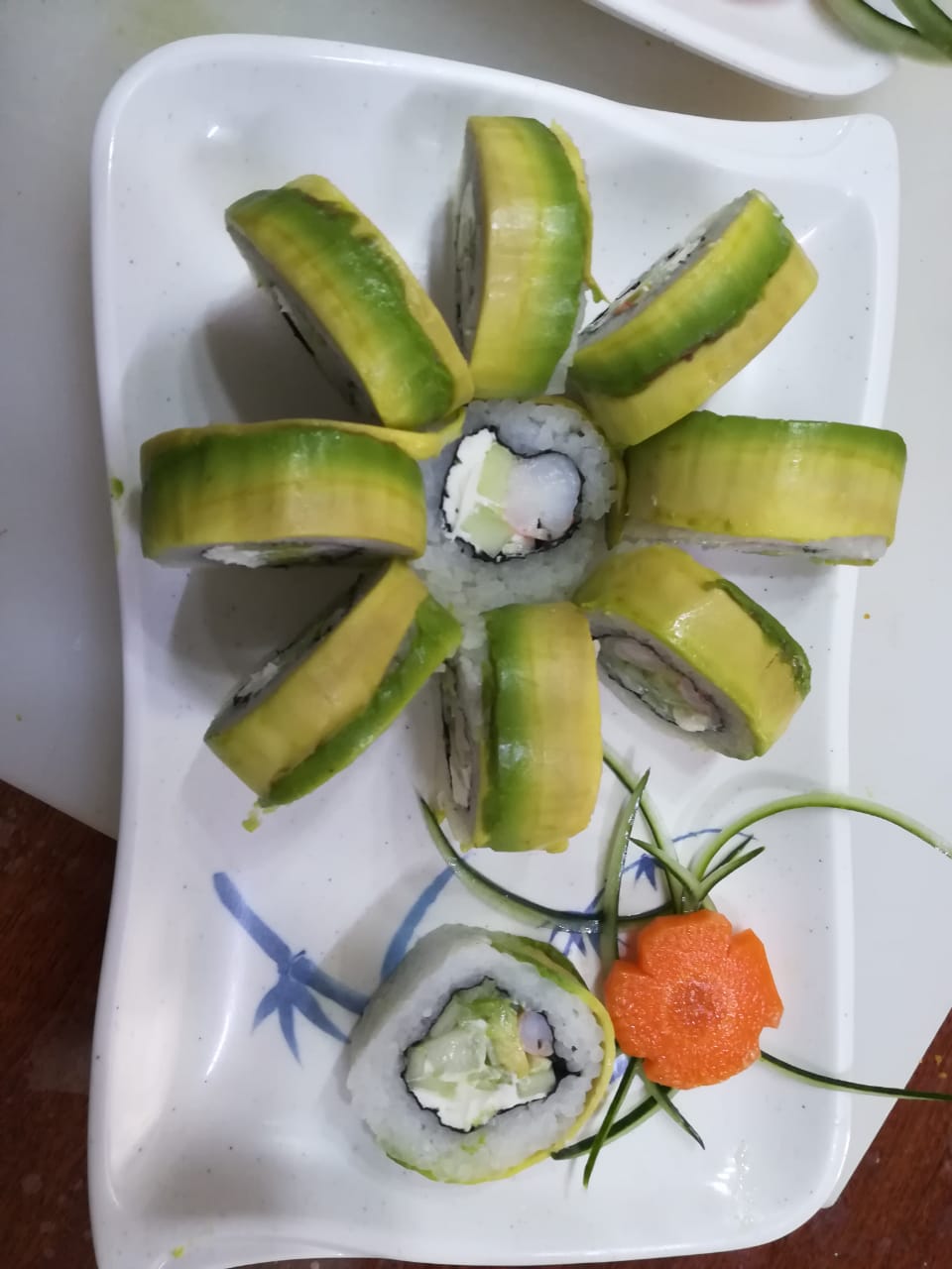 Aguacate por fuera con camaron ó surimi por dentro