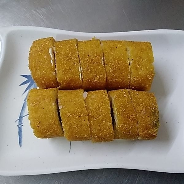 Phiadelphia queso manchego queso amarillo por fuera empanizado,con camaron ó surimi por dentro