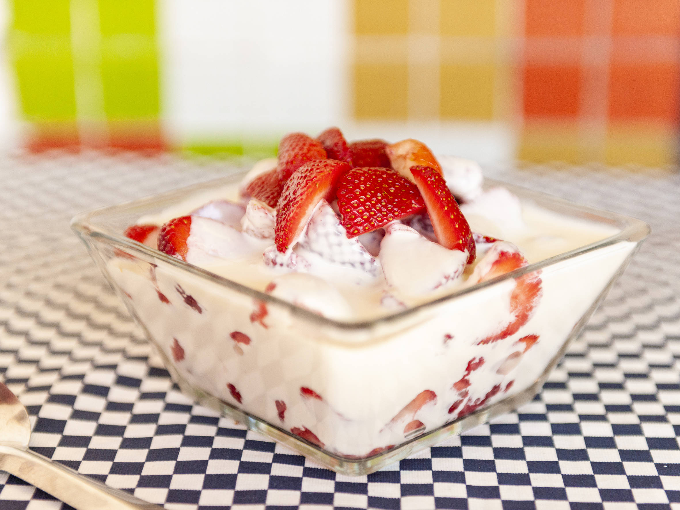 Fresas naturales selectas con crema dulce (receta de la casa).