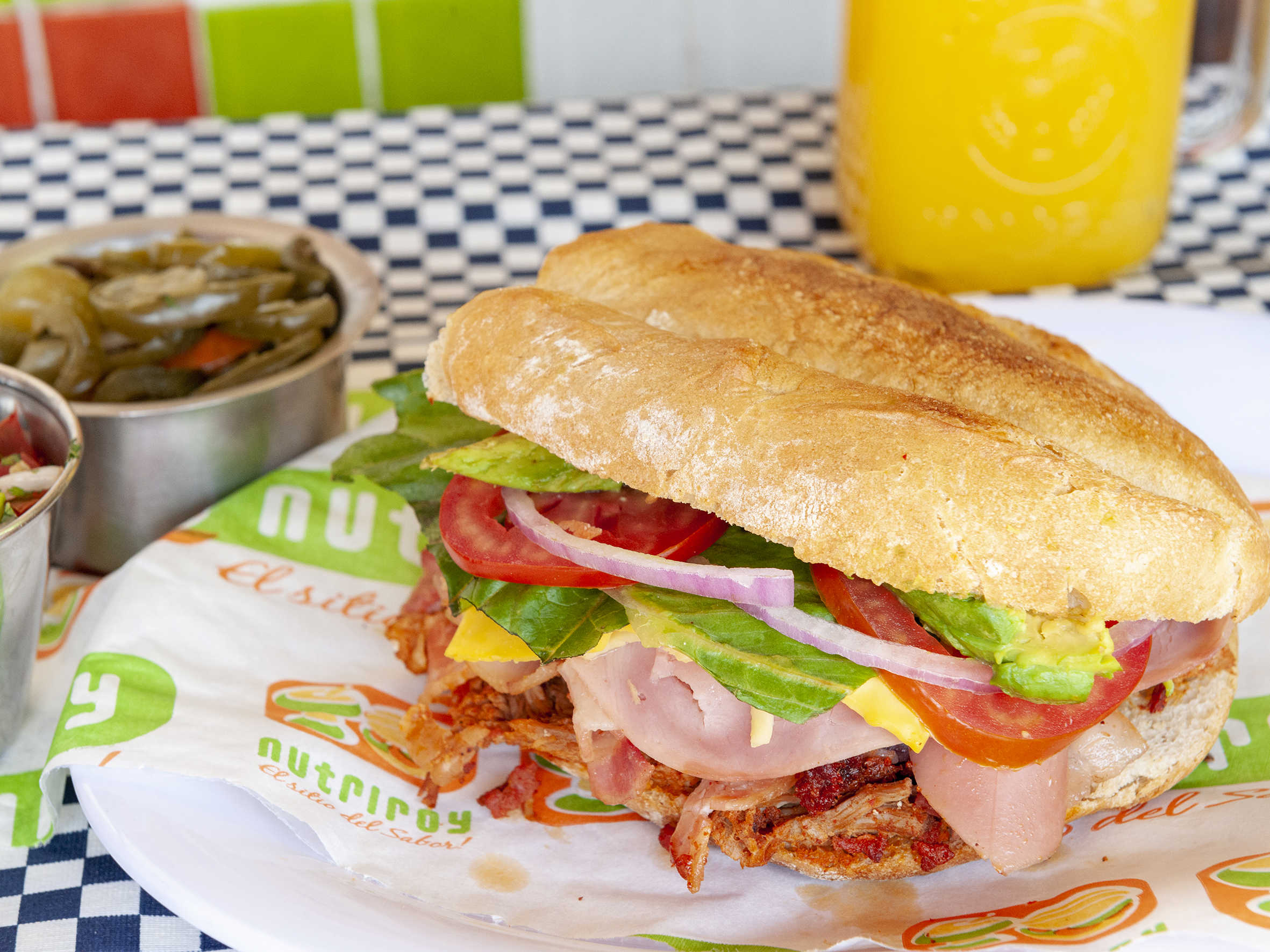 Tortas preparadas con la perfecta combinación de varios ingredientes servidos en pan de telera, incluye: pierna, salami, salchicha, chorizo, jamón, tocino, queso amarillo, queso fundido y piña.