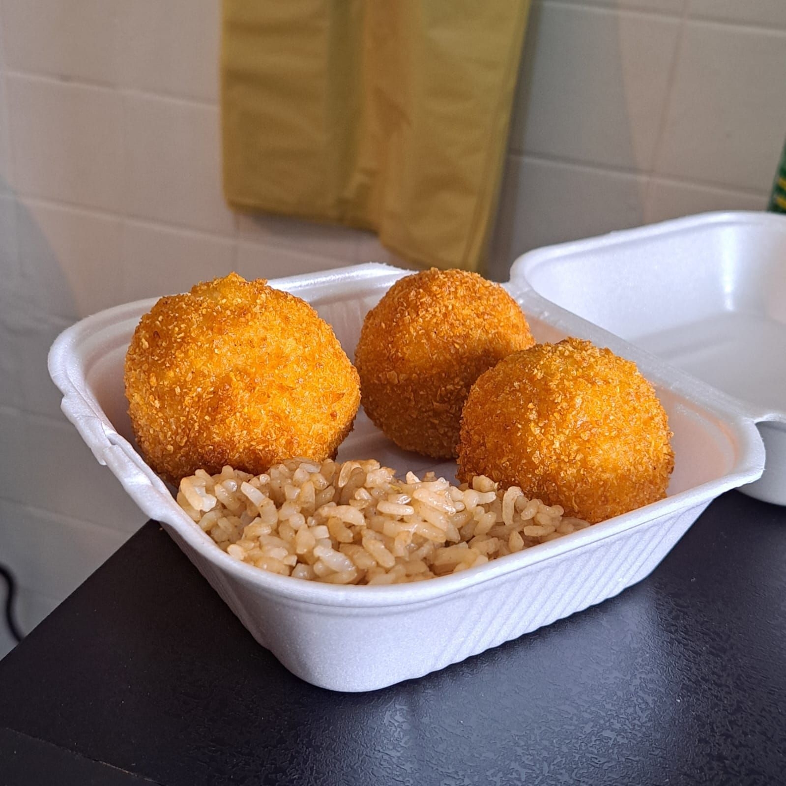 Tres bolas rellenas de philadelphia y camarón y empanizadas por fuera.