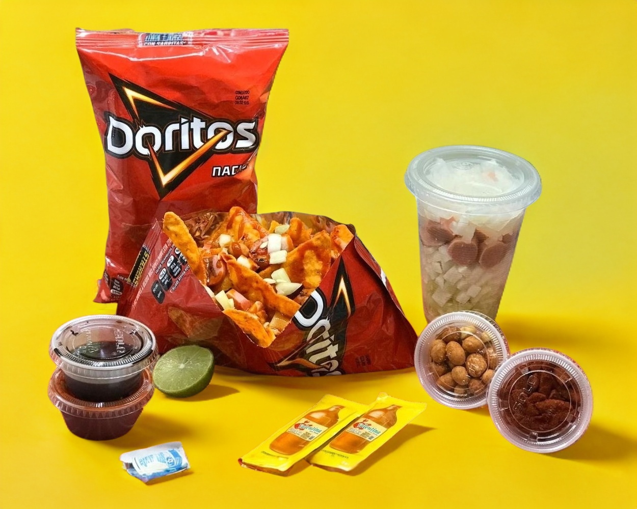 Doritos nacho en la presentación de 58 gr. acompañado del delicioso queso cheddar hellmann's y un toque picosito de rodajas de jalapeño.