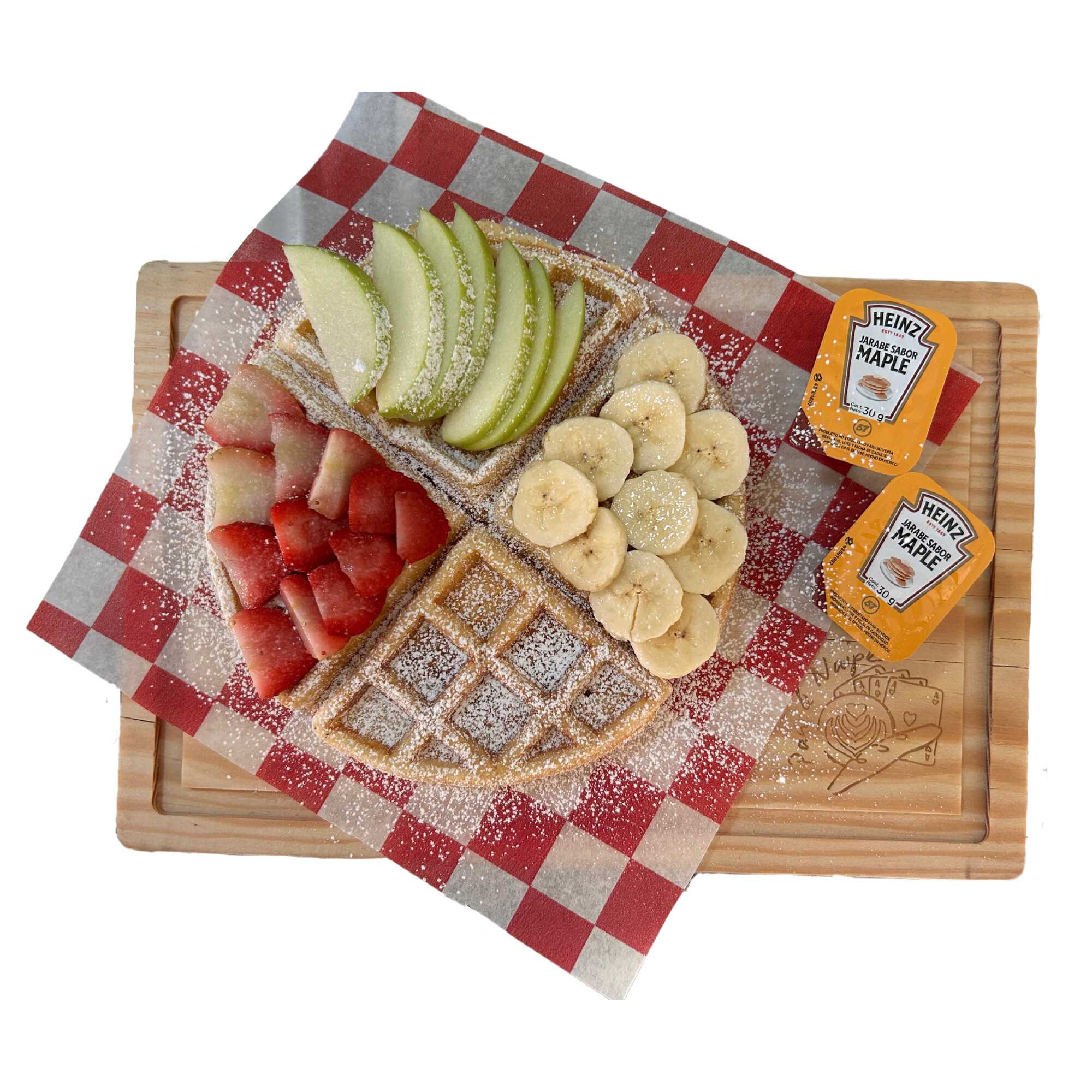 Waffle de vainilla, frutas y miel de maple *En promoción 2x1 se aceptaran pedidos hasta antes de las 8:00 pm, de lo contrario el pedido será rechazado*
