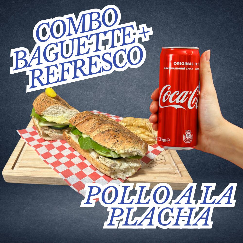 Baguette Pollo a la Plancha*1 + Coca Cola*1 (pedir cambio de sabor de refresco en comentarios)
