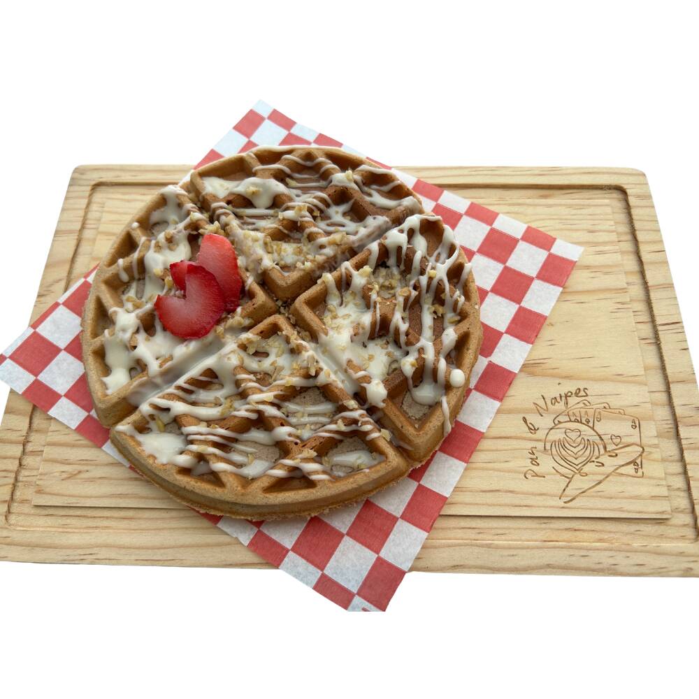 Waffle de canela con glaseado de queso crema