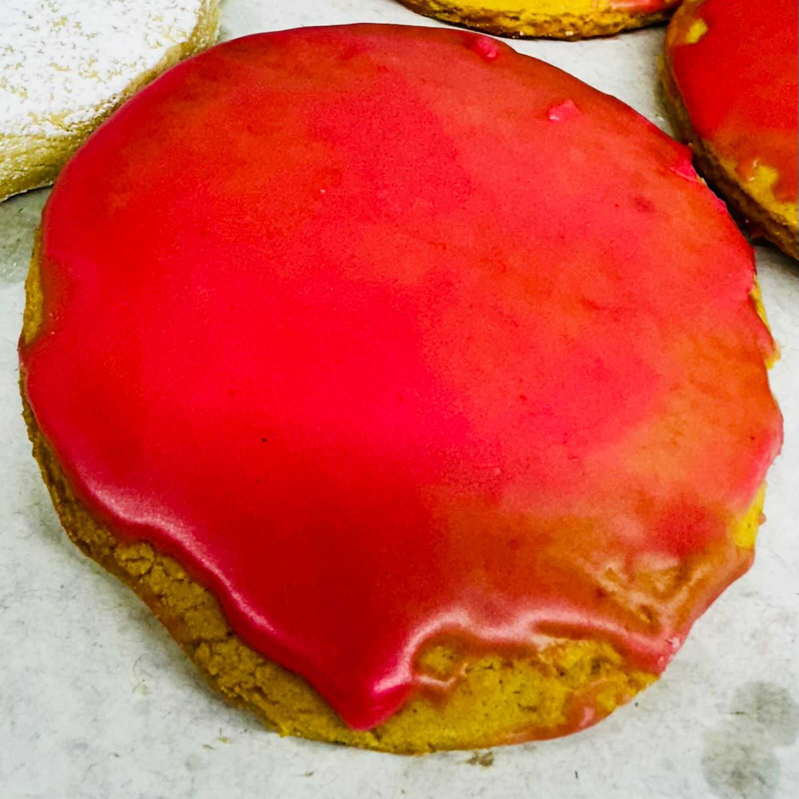 Galleta cubierta de azúcar glass derretida.