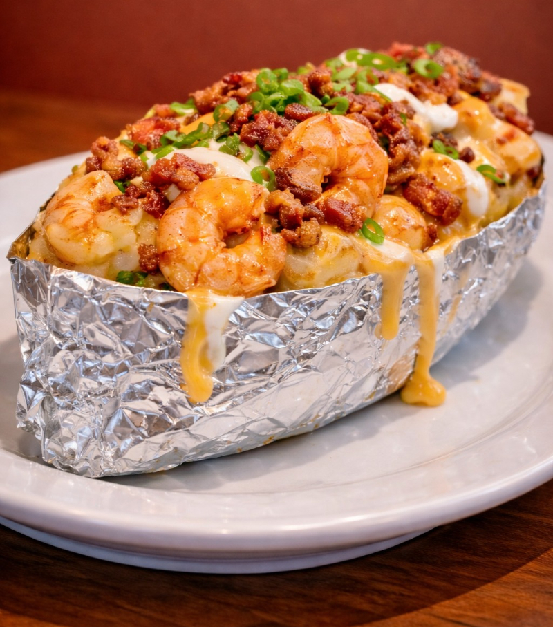 La estrella de nuestra casa con un exquisito aderezo de chipotle, barniz de mantequilla, toque de pimienta, crema, queso, tocino y cebollín (554g).