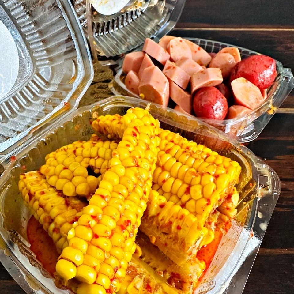 Camarones Sazonados con una de nuestras Salsas artesanales y elote