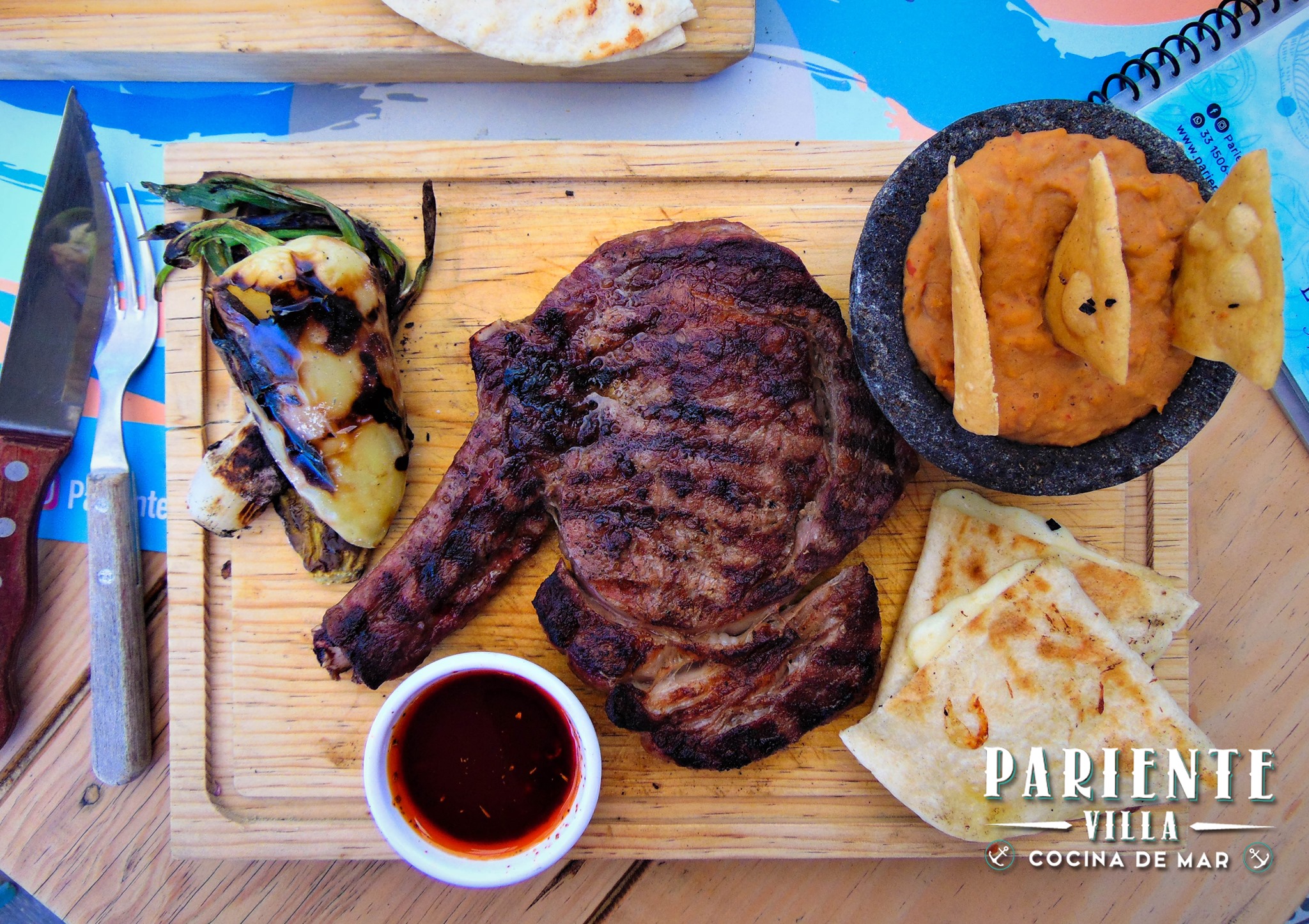 Incluye arracherra,rib eye,queso fundido,mousse de aguacate,cebollita y child güero.