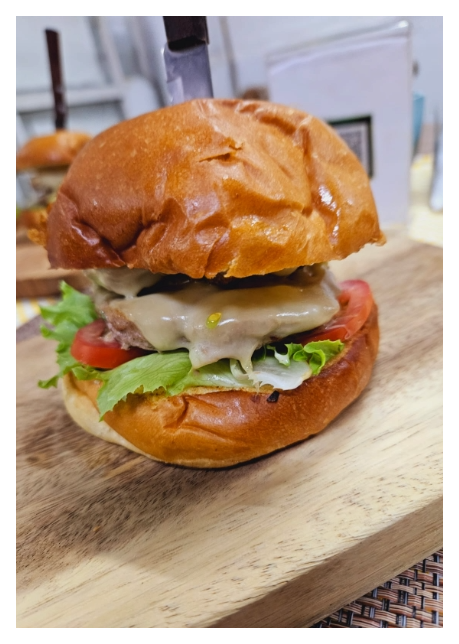Compuesta de 300 g de carne selecta preparada en nuestras instalaciones con una combinación de ingredientes entre piña, queso gouda, lechuga, jitomate bola, cebolla y aderezo chimichurri, papas doradas chips o papas a la francesa.