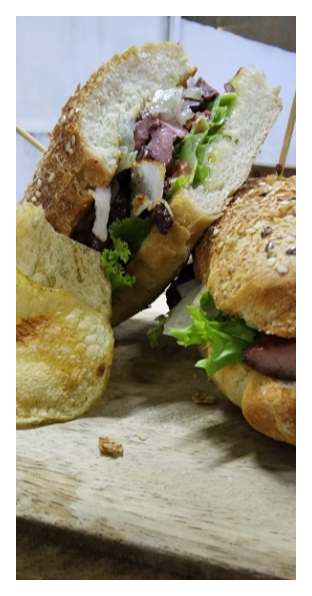 Compuesta de 300 g carne selecta preparada en nuestras instalaciones con una combinación de ingredientes entre piña, queso gouda, lechuga, jitomate bolo, cebolla y aderezo chimichurri, papas doradas chips o papas a la francesa.