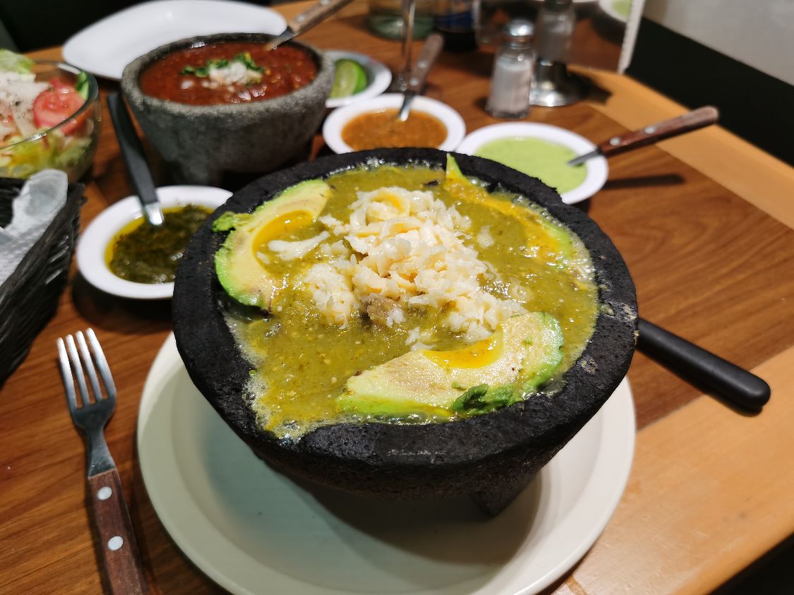 Carne de tu elección cocinada a la parrilla bañado en salsa de tomate verde con queso y trozos de aguacate.