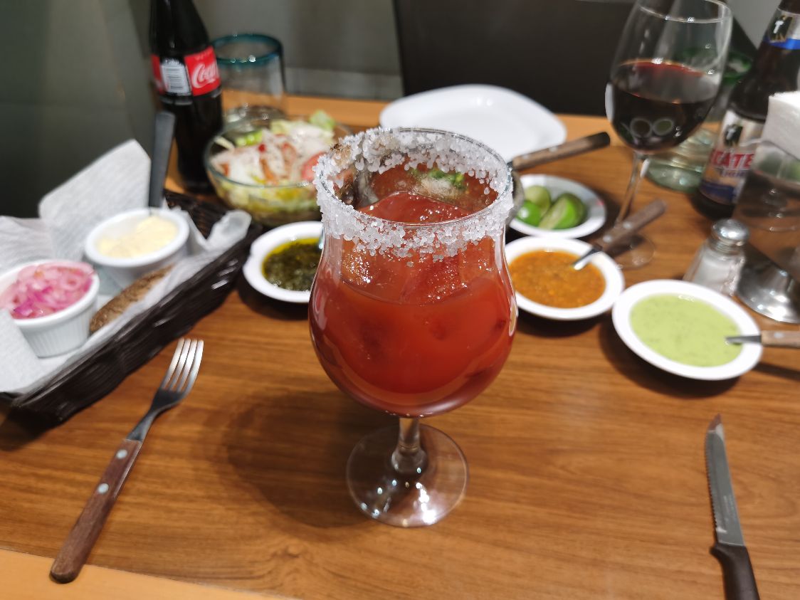 Jugo de tomate y almeja preparado con salsa inlgesa, jugo Maggi y un toque de jugo de limón.