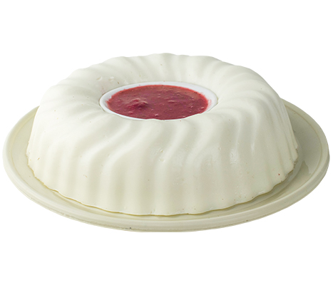 Ligera gelatina de yoghurt natural endulzada con Splenda, acompañada con una salsa de fresa endulzada con miel de agave.