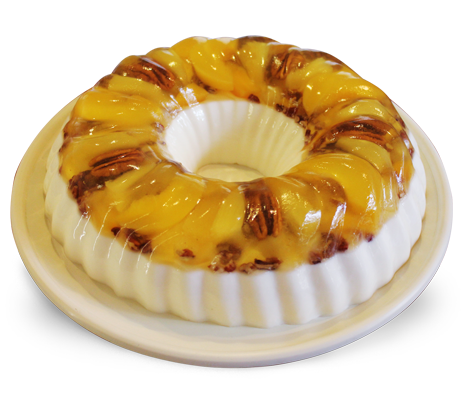 Rica gelatina de queso Philadelphia con trozos de piña, nuez y durazno.
