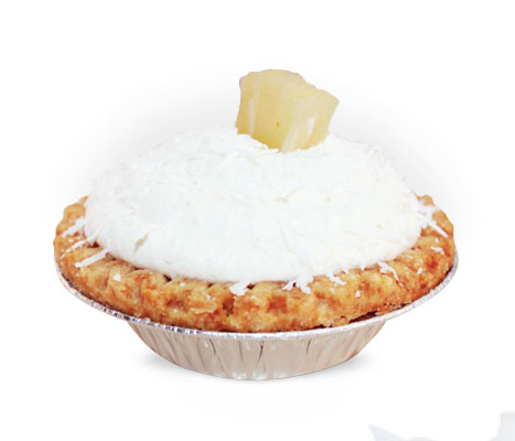 Pay mini de coco, con cremoso relleno de coco con piña, decorado con crema natural batida y coco rallado.