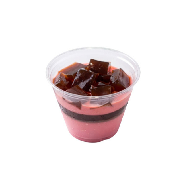 Deliciosa gelatina de frutas, rellena de manzana, fresa y nuez con queso, tamaño individual.