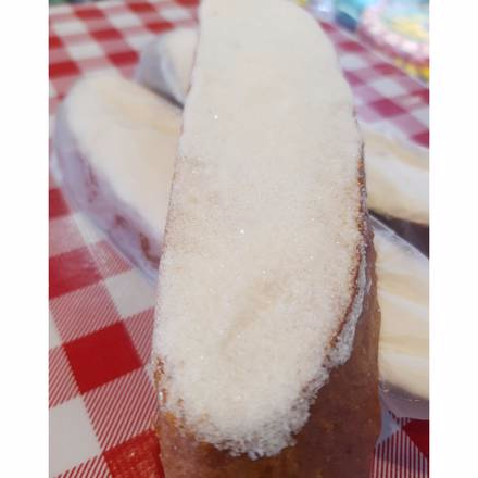 Rebanada de pan de mantequilla cubierto con crema y azucar