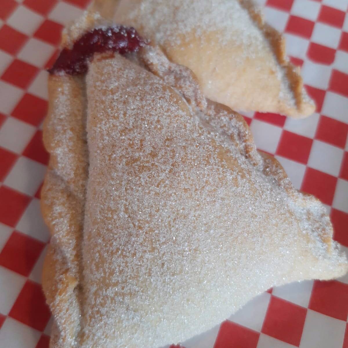 Empanada tradicional rellena de mermemlada defresa y decorada con azucar