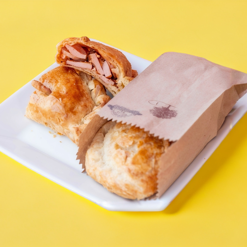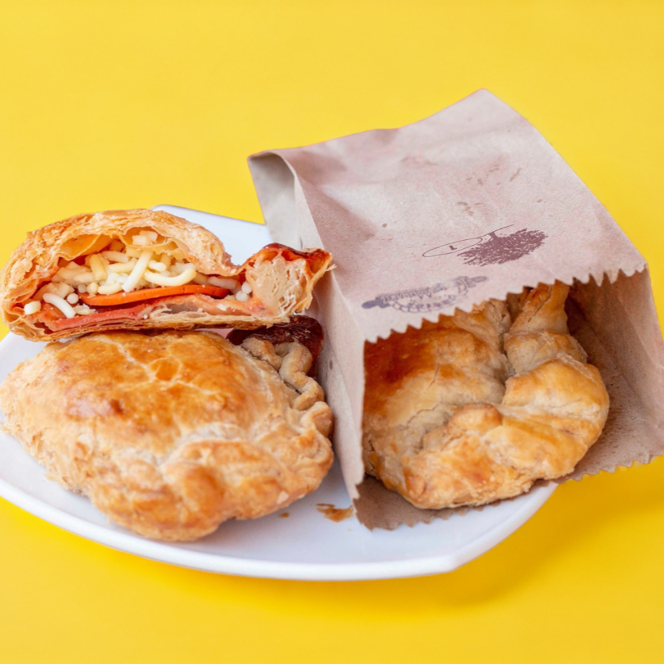 Delicioso hojaldre relleno de rodajas de pepperoni y queso mozarella.
