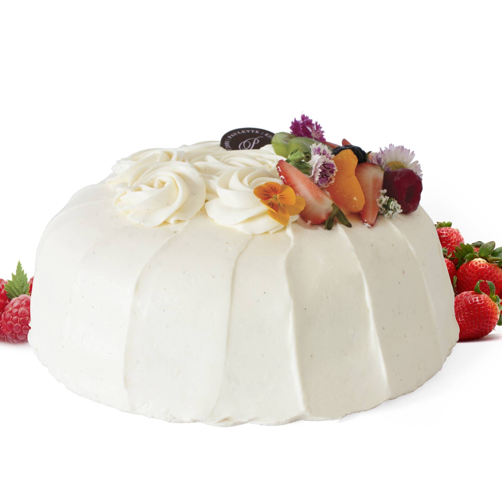 Pastel de genoise humedecido en mezcla de 3 leches y vainilla de papantla, crema y un bouquet de flores y frutas.