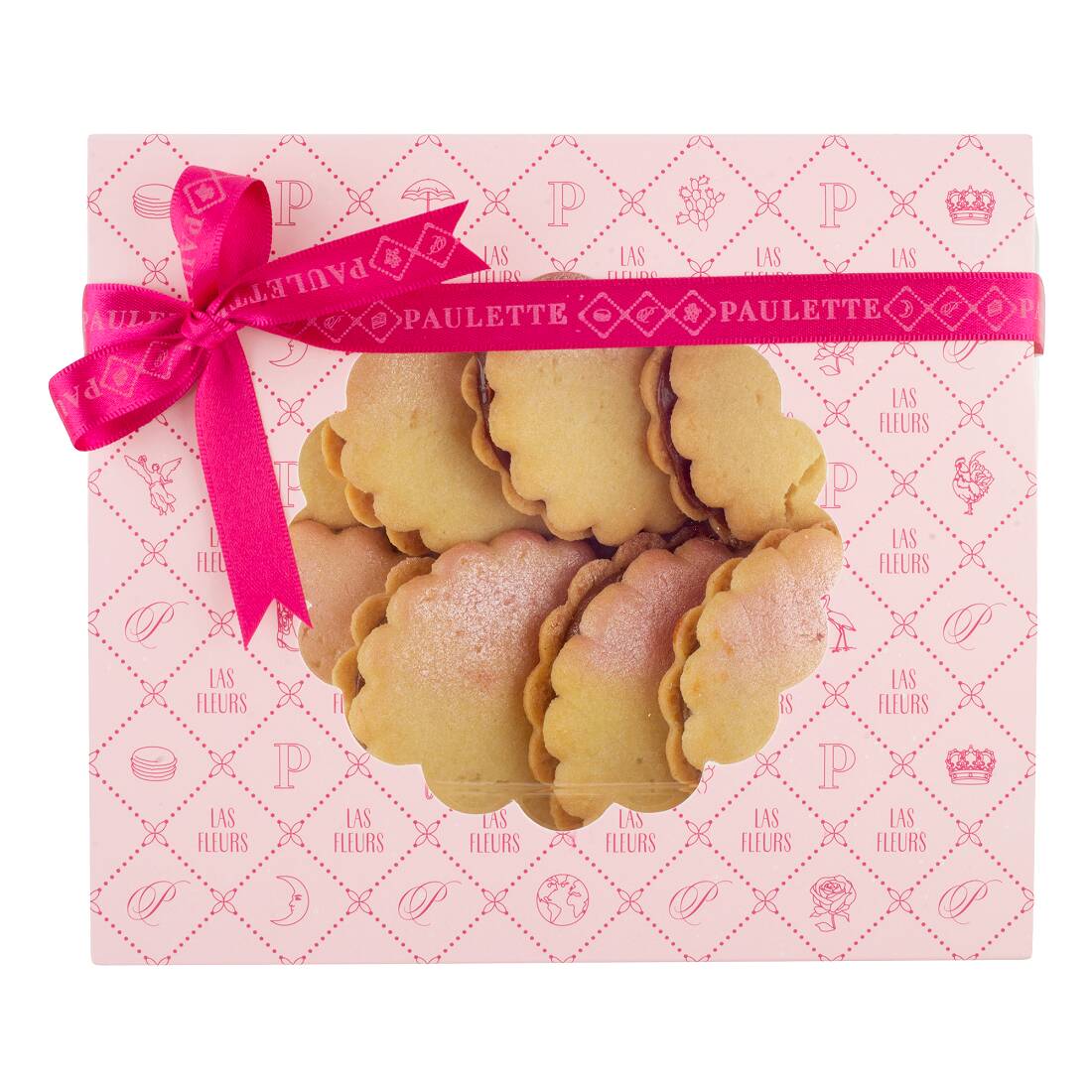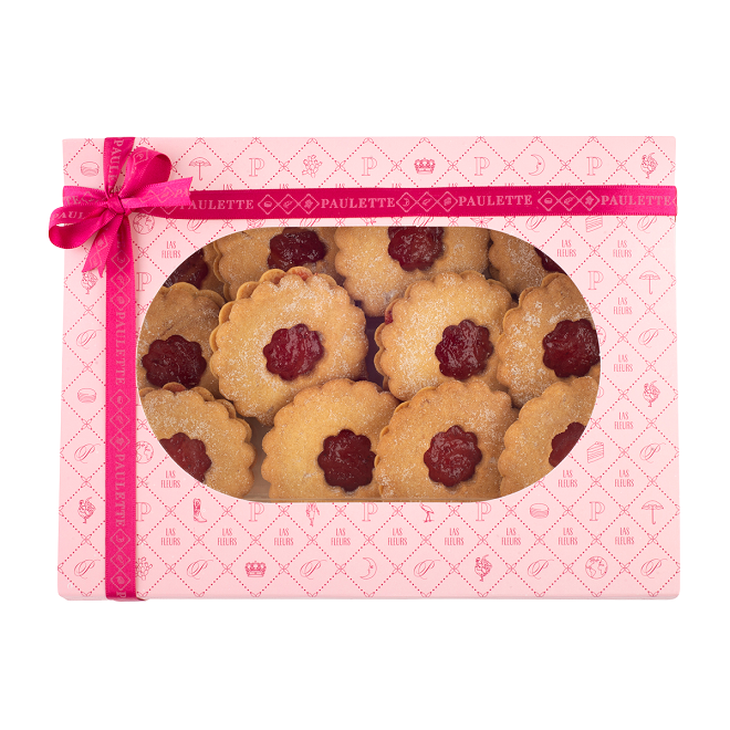 Flores de mantequilla, rellenas artesanalmente de compota de fresa.