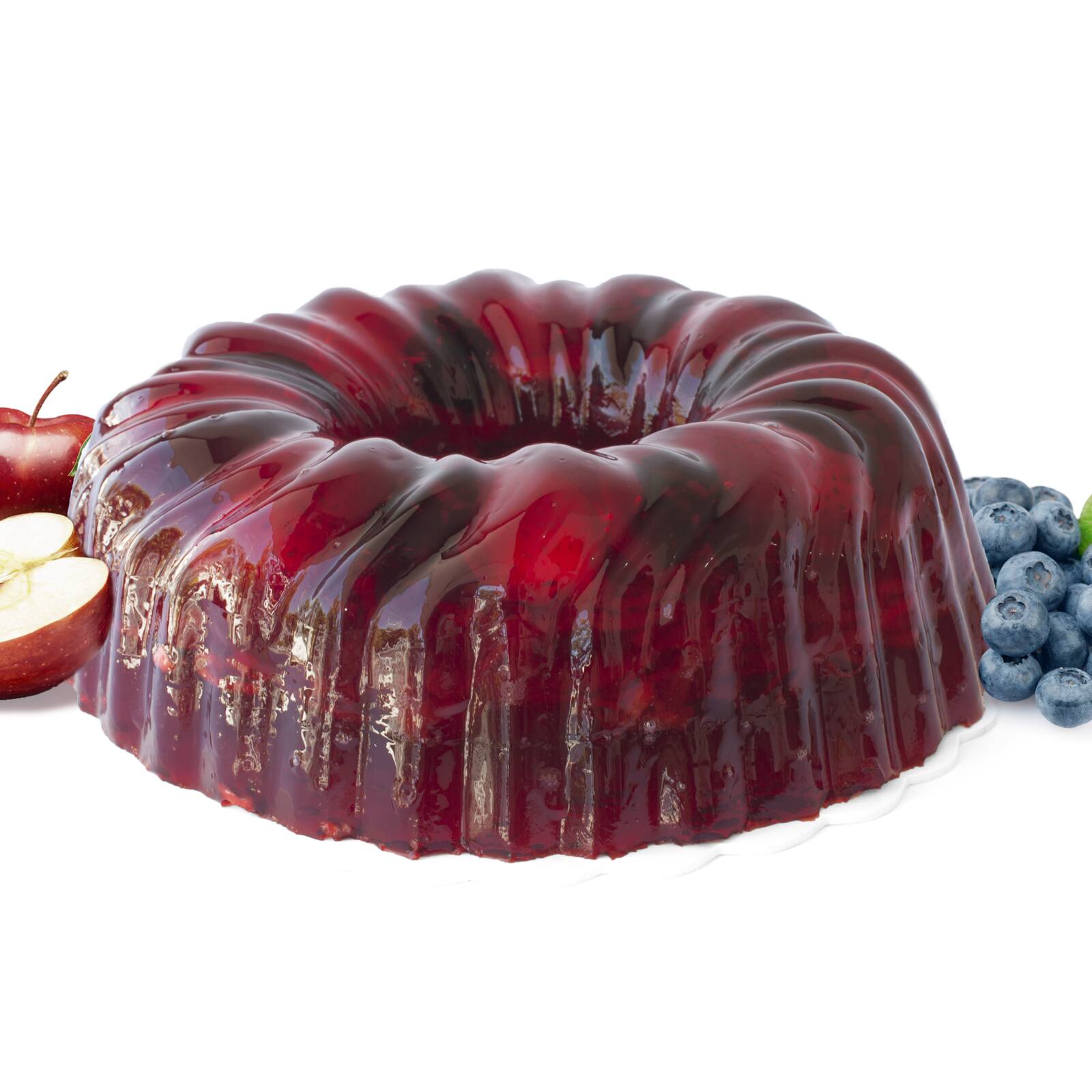 Gelatina de frutos rojos con gran cantidad de manzana, fresas, uvas, frambuesas, moras y nueces. Libre de azúcar.