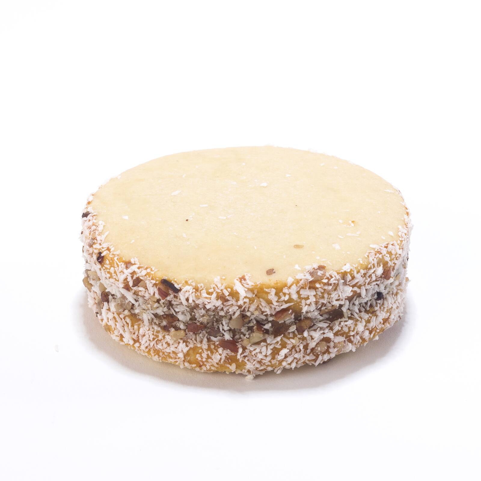 El más vendido en Argentina: dos suaves galletas de maicena unidas por dulce de leche bordeado de nuez y coco. Por pieza.