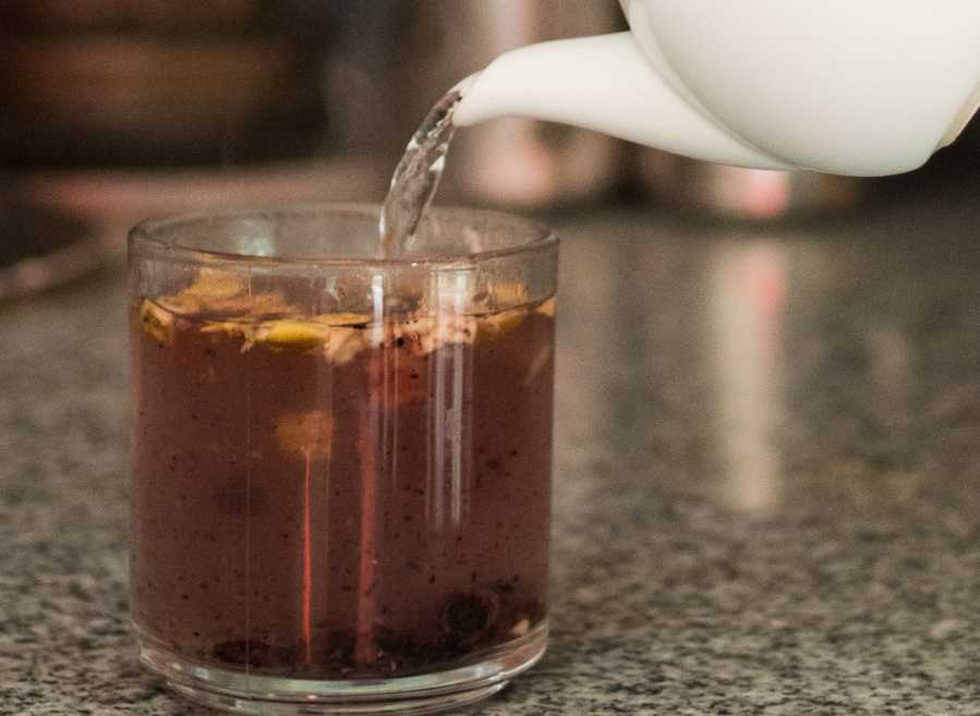 Una mezcla endulzada de especias picantes, té negro, leche y hielo.