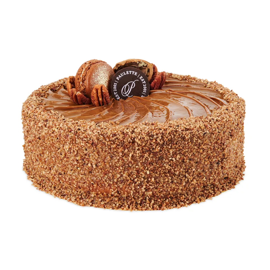 Suave bizcocho vainilla, listón de cheesecake, dulce de leche argentino y nuez.