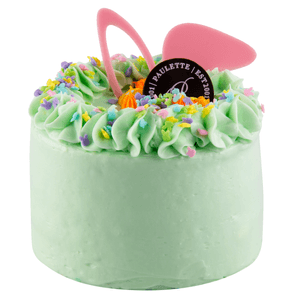 Esponjoso bizcocho de vainilla y lluvia de confeti, cubierto de ligera crema de queso y miles de destellos de color, M&M's en su interior.