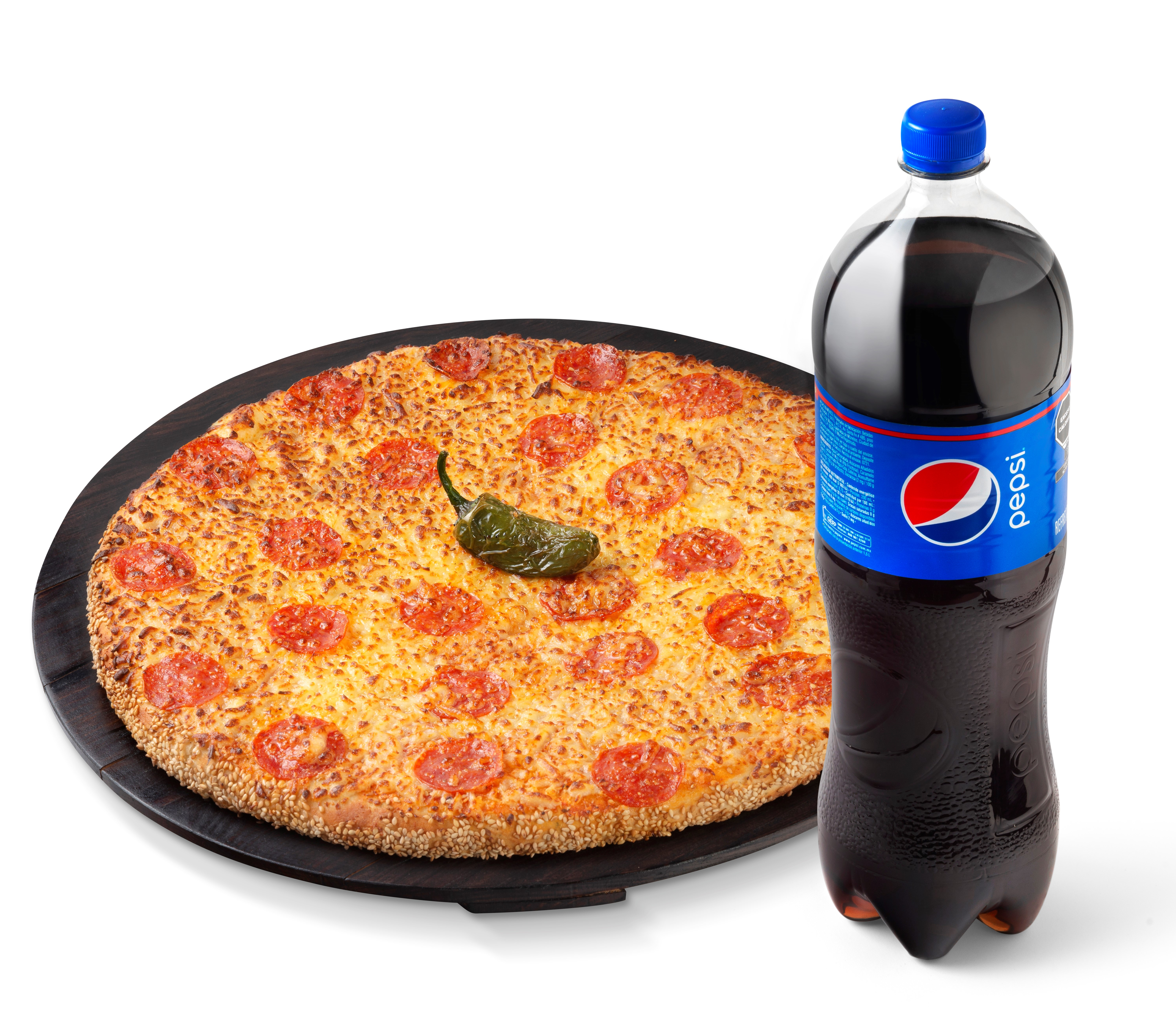 Pizza familiar 38 cm 12 rebanadas y refresco familiar
