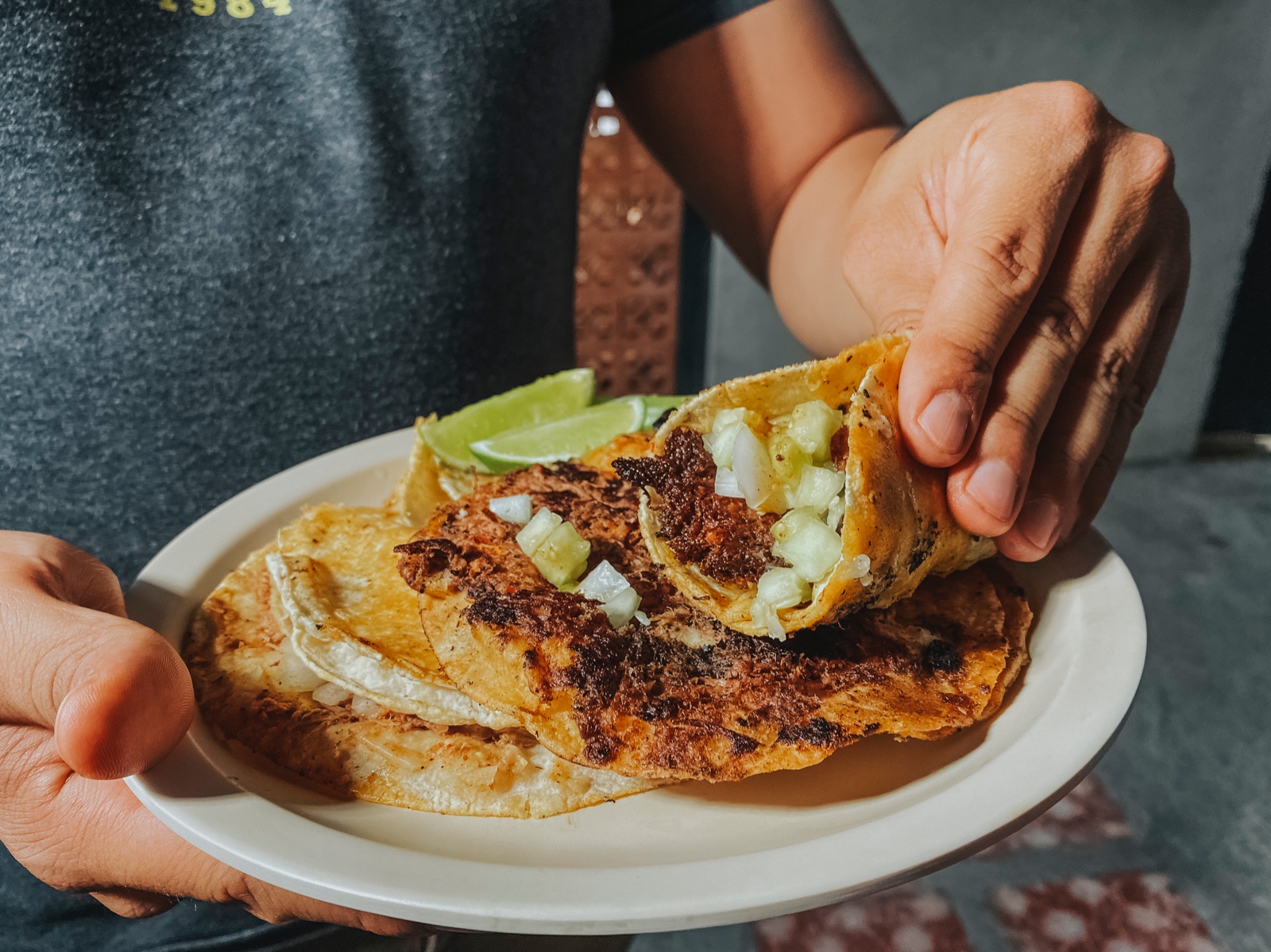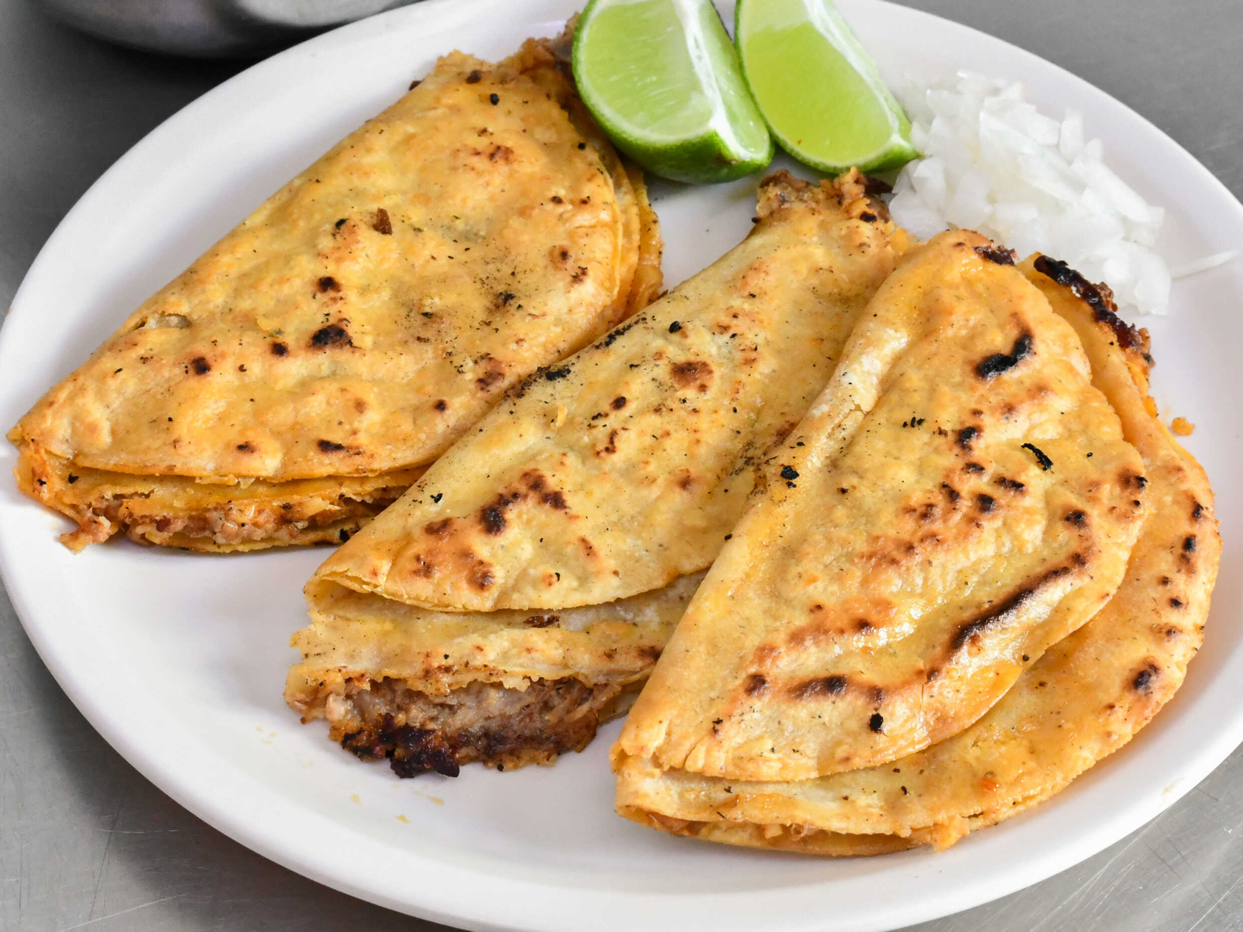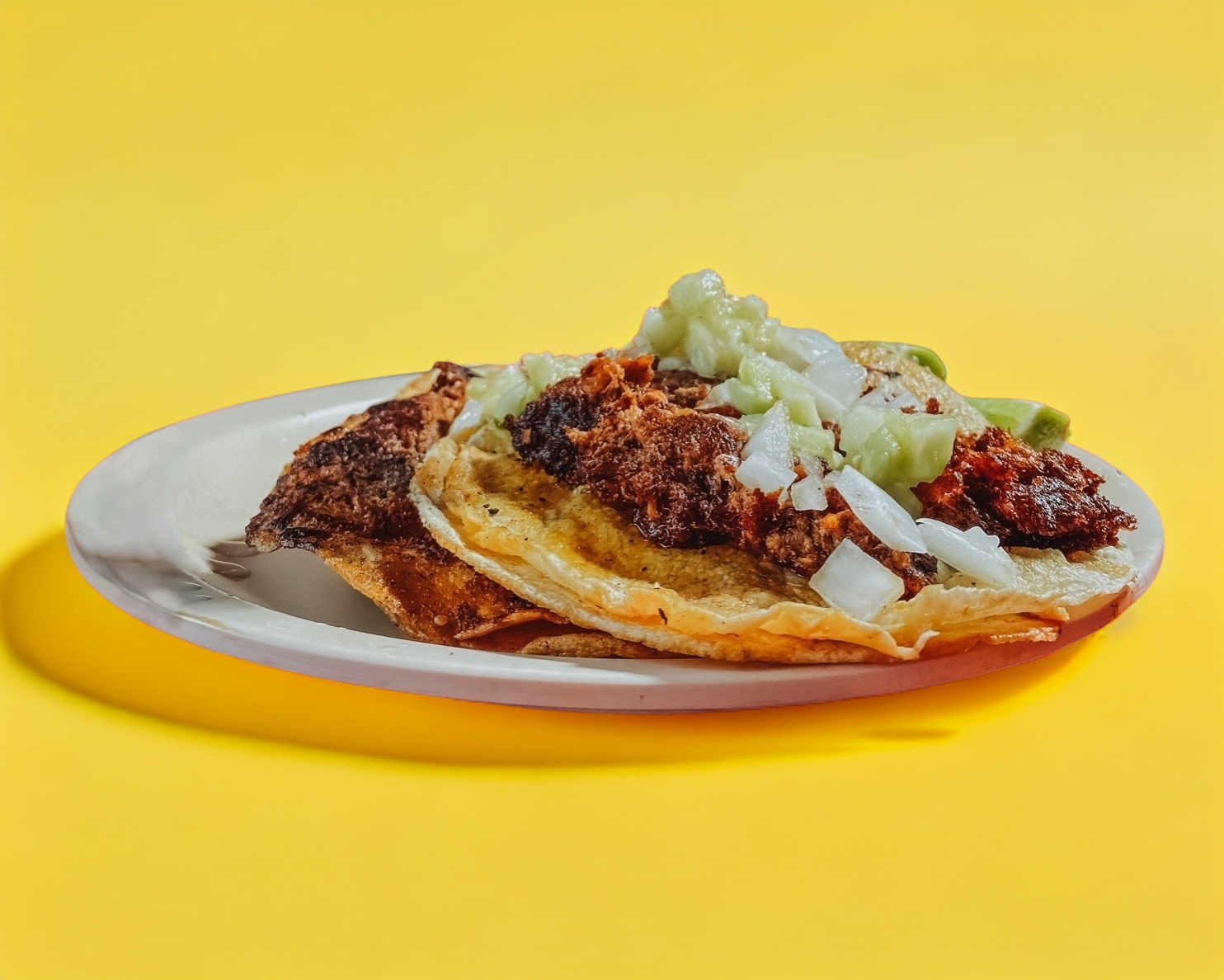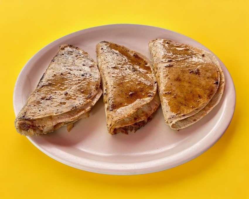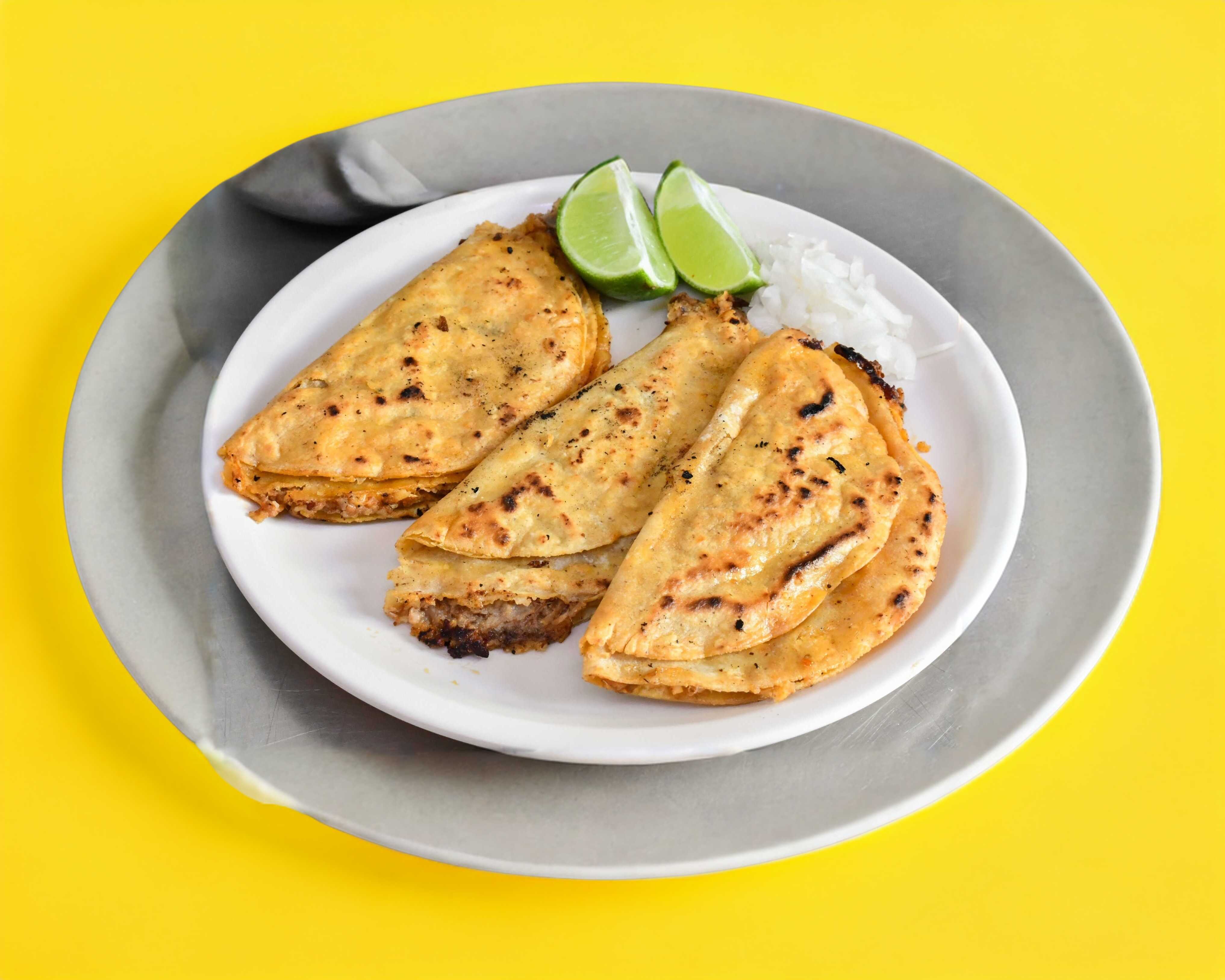 TACO ABIERTO DE PREPARACIÓN ABIERTA, CARNE DORADA Y TORTILLA ABIERTA. incluye salsas (porcion personal)