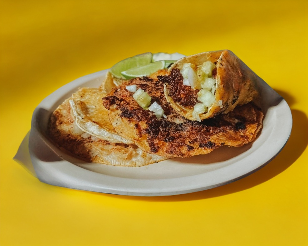 1 Taco de maíz dorado preparado con 40gr de carne apróx, Incluye 2 salsas Sabor disponibilidad) + Limón y Cebolla aparte.