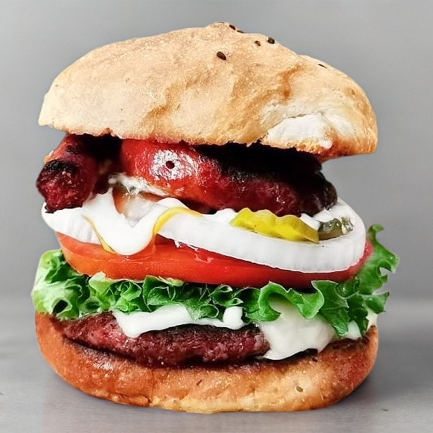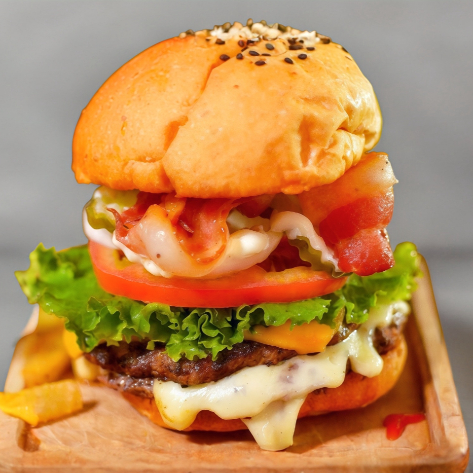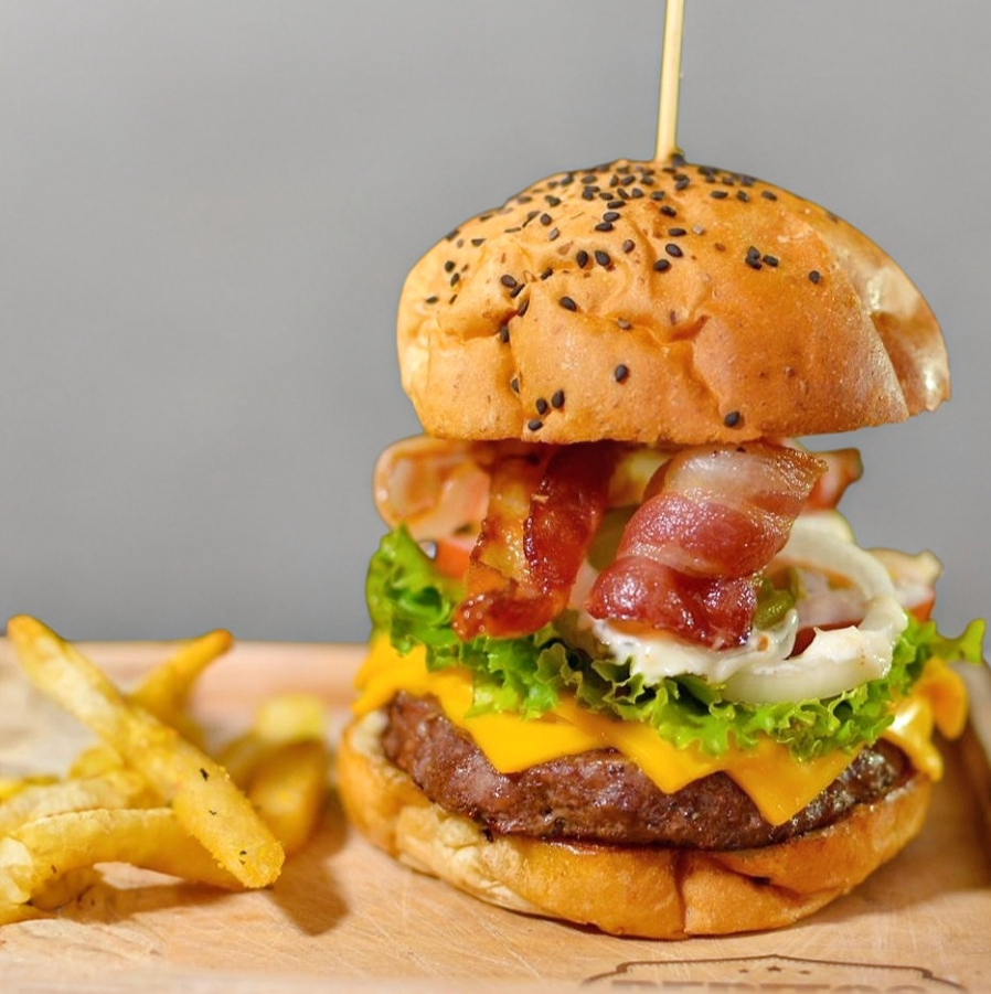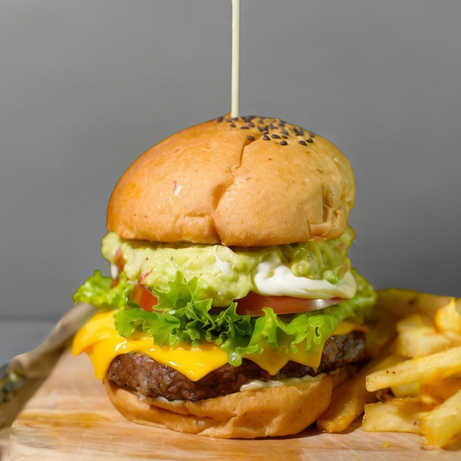 Doble carne, calidad suprema, doble queso, cheddar amarillo, manchego y tocino.