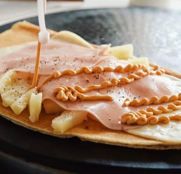 Jugosa pechuga de pollo cruji bañada en salsa BBQ con queso manchego y tocino.