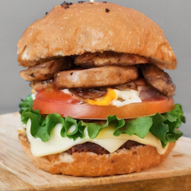 Champiñones asados y doble queso manchego sobre carne de res suprema.