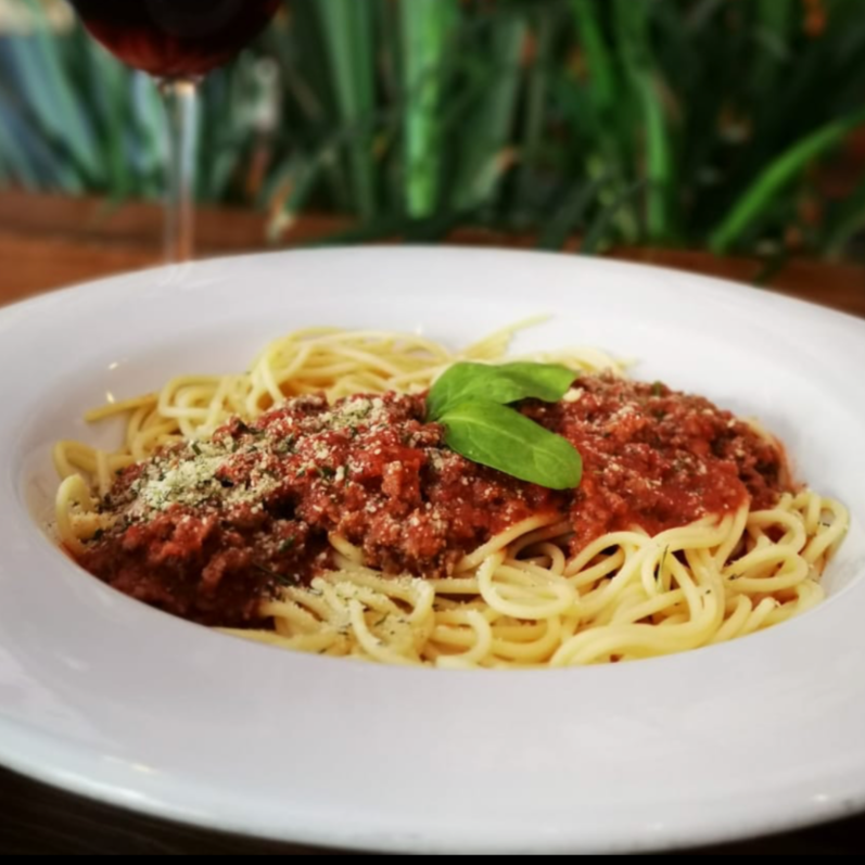 Aldentes espagueti y carne fresca, bañada en nuestra salsa bolognesa espolvoreado con queso parmesano.