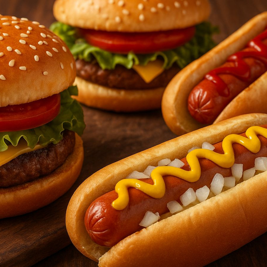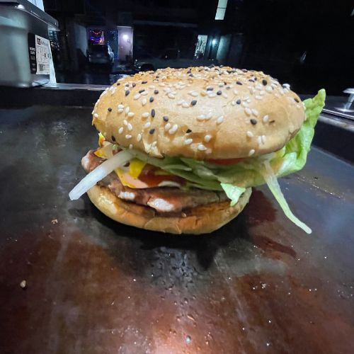 Deliciosa hamburguesa carne 100% res , pan para hamburguesa, queso amarillo, tocino, jitomate, cebolla y lechuga.