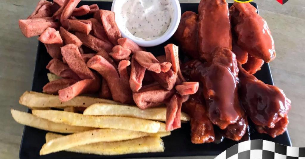 20 alitas, 1 papas a la francesa y 5 dedos de queso